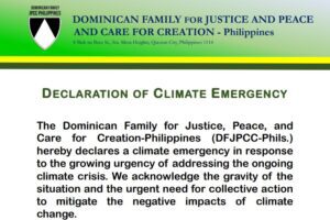 Statement for the Declaration of Climate Emergency of the Dominican Family for Justice and Peace – Philippines
