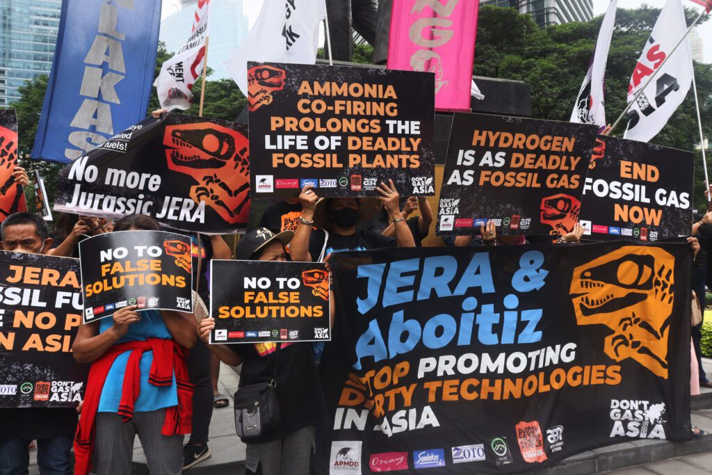 The demonstrators criticized Aboitiz and JERA for their ongoing promotion of fossil gas in the Asian region.